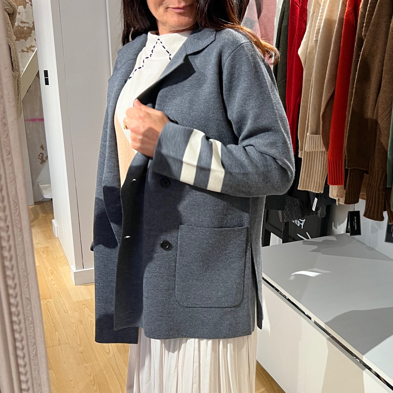 La veste croisé de ADAWAS, 6 boutons, rayures sur les manches, nouveauté ! Cette veste, légère et tendance, idéal pour vos looks décontractés et élégants.