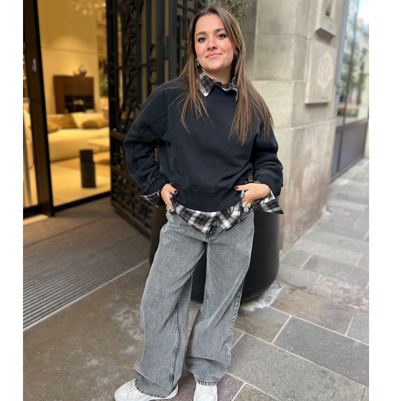Le sweat MIKE de ÂME, couleur carbone, style street élégant, nouveauté ! Ce sweat, élégant et confortable, idéal pour rester chic en sweat ! Parfait par dessus une chemise.