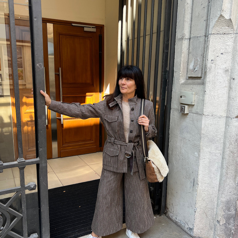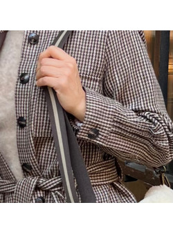 COUPE SAHARIENNE EN MOTIF PIED DE POULE COULEUR CHOCOLAT