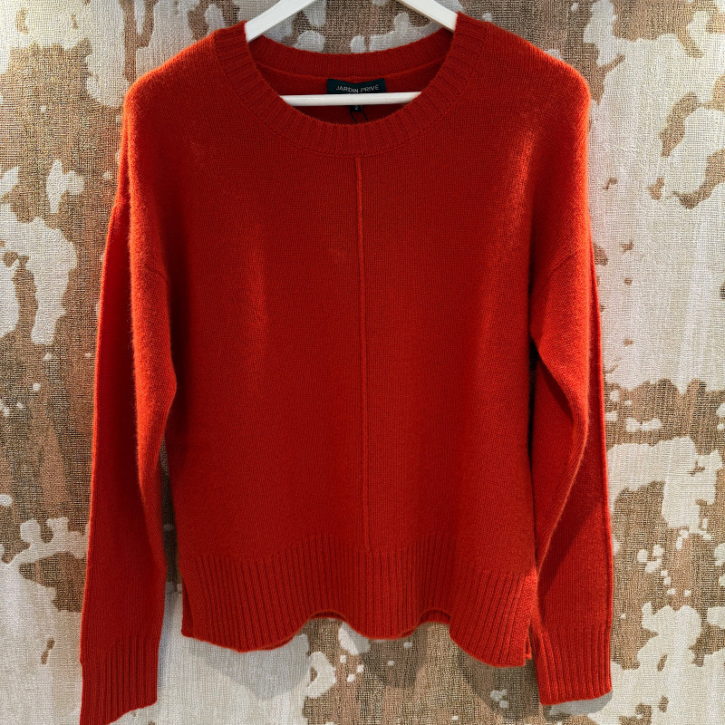 Pull couleur corail de la marque jardin privé col rond en 100% cachemire