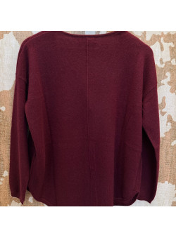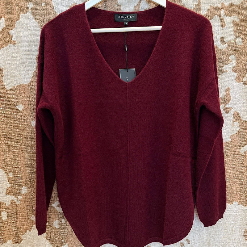 Pull 100% cachemire col V de couleur bordeaux jardin privé