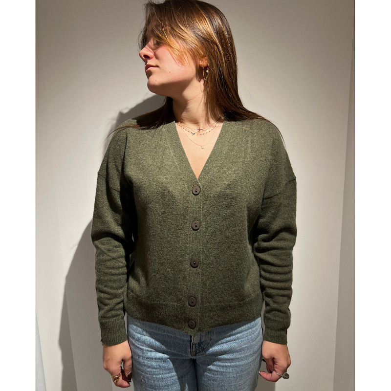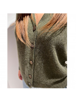 Gilet 100% cachemire kaki jardin privé avec 5 boutons à l’avant