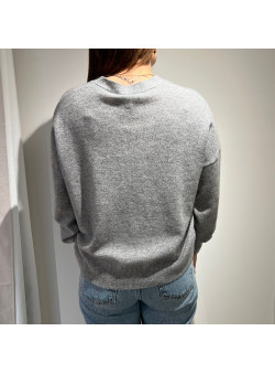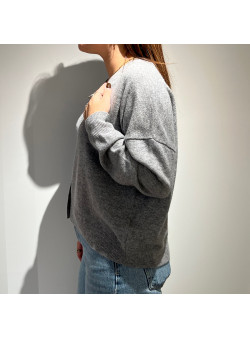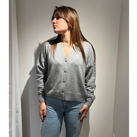 Gilet en 100% cachemire gris de chez jardin privé avec 5 boutons à l’avant